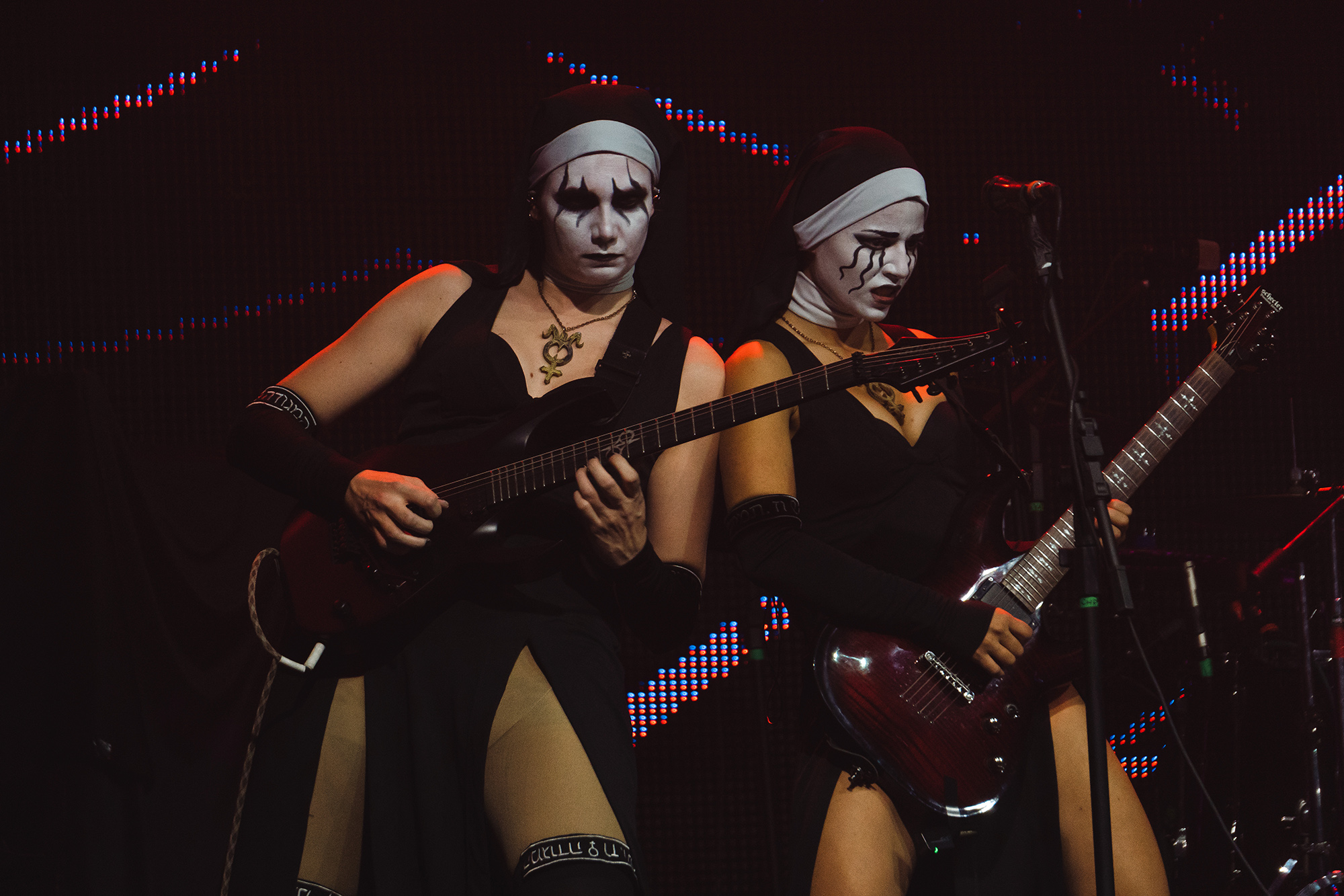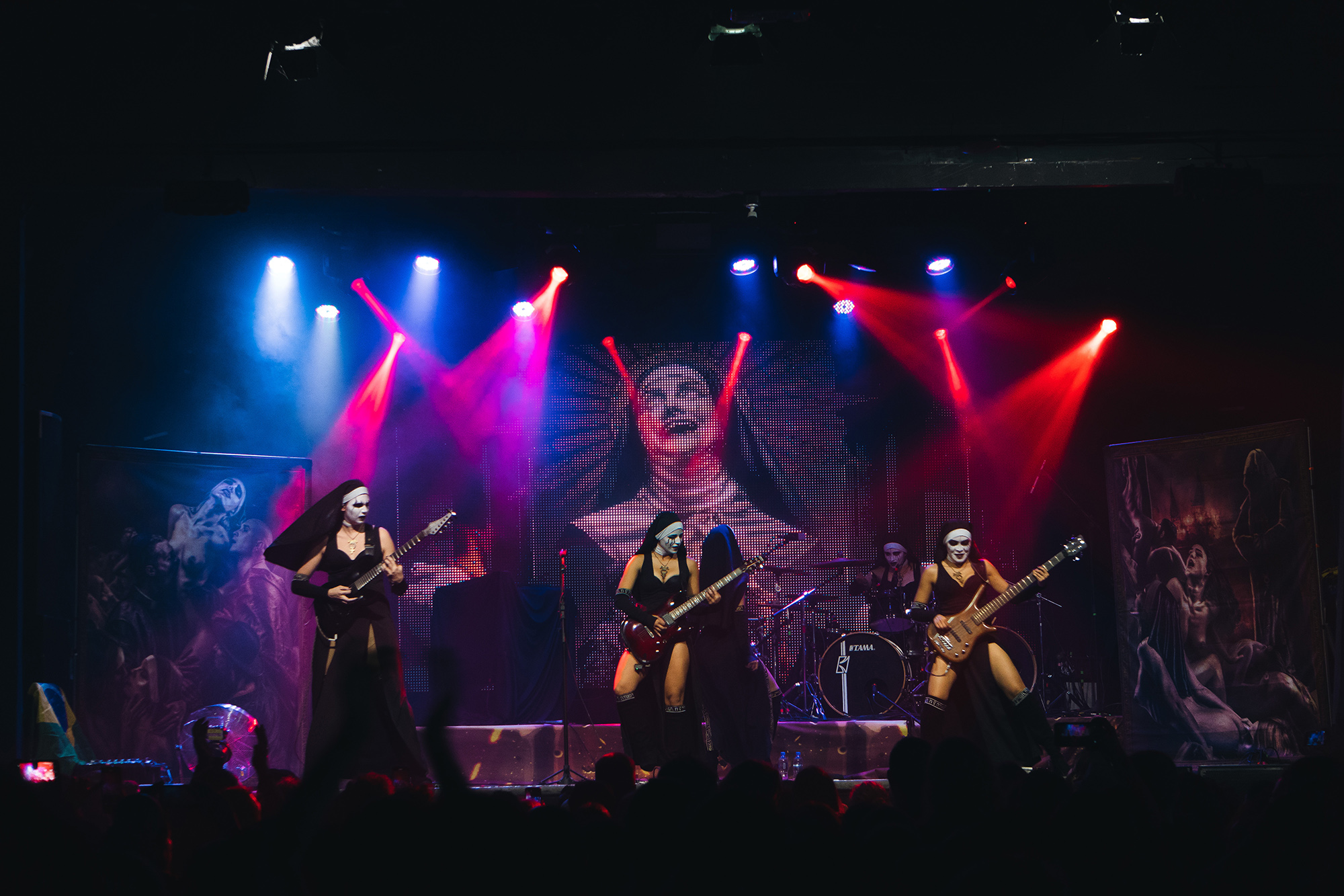 Já a Dogma é nome novo no heavy metal mundial e está em plena divulgação do impressionante primeiro álbum homônimo, com 11 faixas bombásticas. A banda é formada por quatro mulheres cujas identidades são desconhecidas, que se apresentam trajadas de freiras. As freiras do metal, Lilith, Lamia, Nixe, Abrahel, trazem influências de Kiss, In This Moment e Burning Witches, sempre com riffs arrasadores e melodias poderosas.